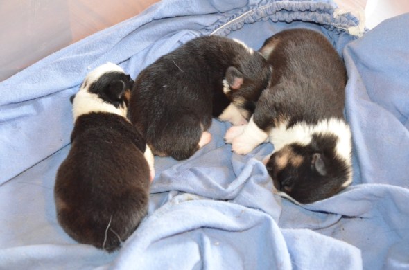 Lori’s litter is here. They were born on Thursday, and have already had their tails and dewclaws clipped.